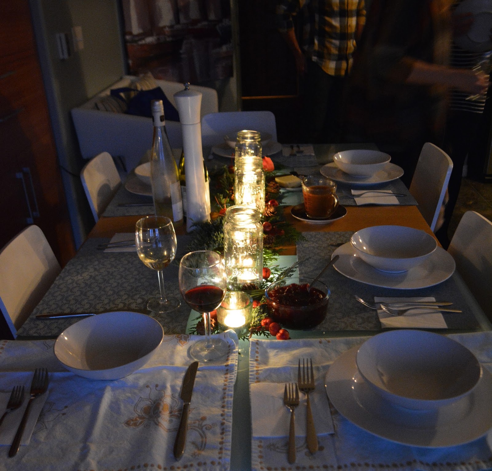 | Table's set! Britt and I cooked up a turkey and enjoyed a thanksgiving dinner at her Kenora apartment with friends. |